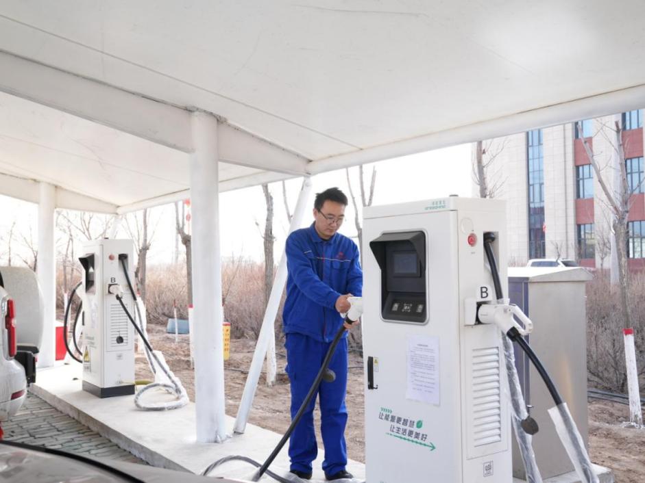 矿职工利用新安装的智能充电桩为汽车充电。刘志杰 摄